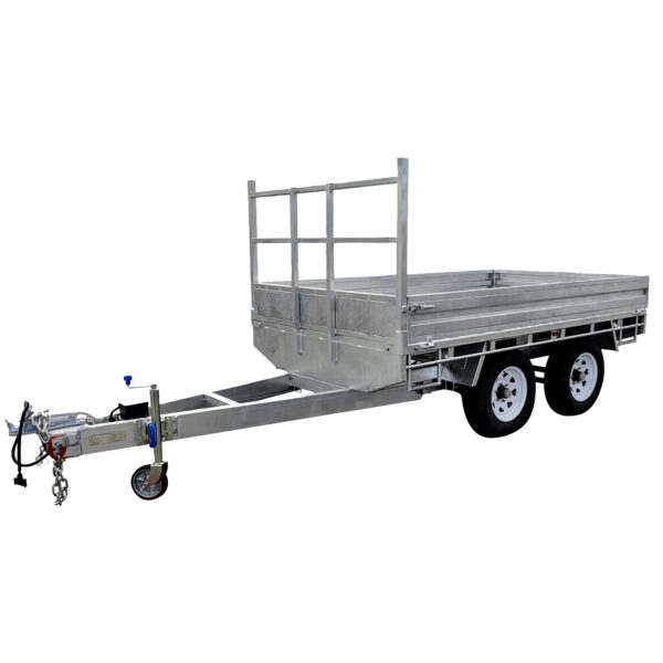 Handpick the perfect size to suit your needs – 10×6, 12×7, 14×7, and 16×8. Dive into specialized options like the 12×7 and 14×7 Hydraulic 3-way Tipper Flat Top Trailers for Sale with ramps for added versatility.